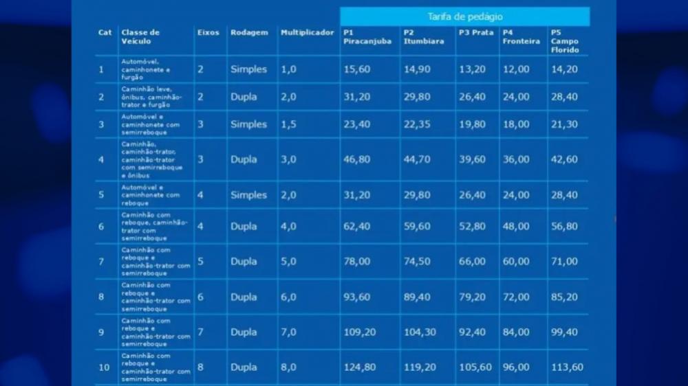 Os pedágios da BR-153 em Goiás e Minas Gerais terão aumento de até quase 100% a partir do dia 26 de março, quando entram em vigor as novas tarifas com a troca de concessionária da rodovia. Os valores podem chegar a R$ 124,90, dependendo do tipo de veículo.