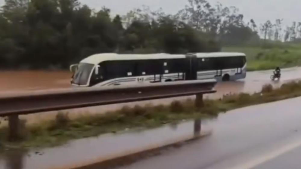 A situação se agravou quando a cancela automática que deveria interditar a via foi quebrada por um motociclista, permitindo que outros motoristas tentassem atravessar o local mesmo com o alto nível da enxurrada.
